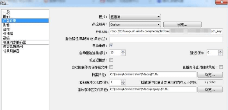 2)直播模式选择:直播流(去个人中心把FMS URL 和串流码复制到这来)